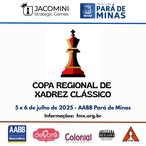 5 e 6/07/2025 – Copa Regional de Xadrez Clássico (Pará de Minas/MG)
